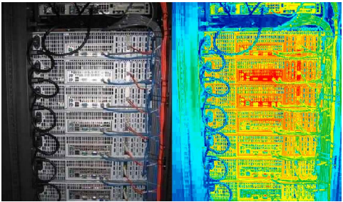 利用热成像仪可以监测和识别出机柜内设备可能存在的散热不良的问题,同时进行发展趋势的跟踪监测,如果发现监测结果超出预设的报警值,则及时给出预警,提醒维护人员尽早进行检查或加强监控。